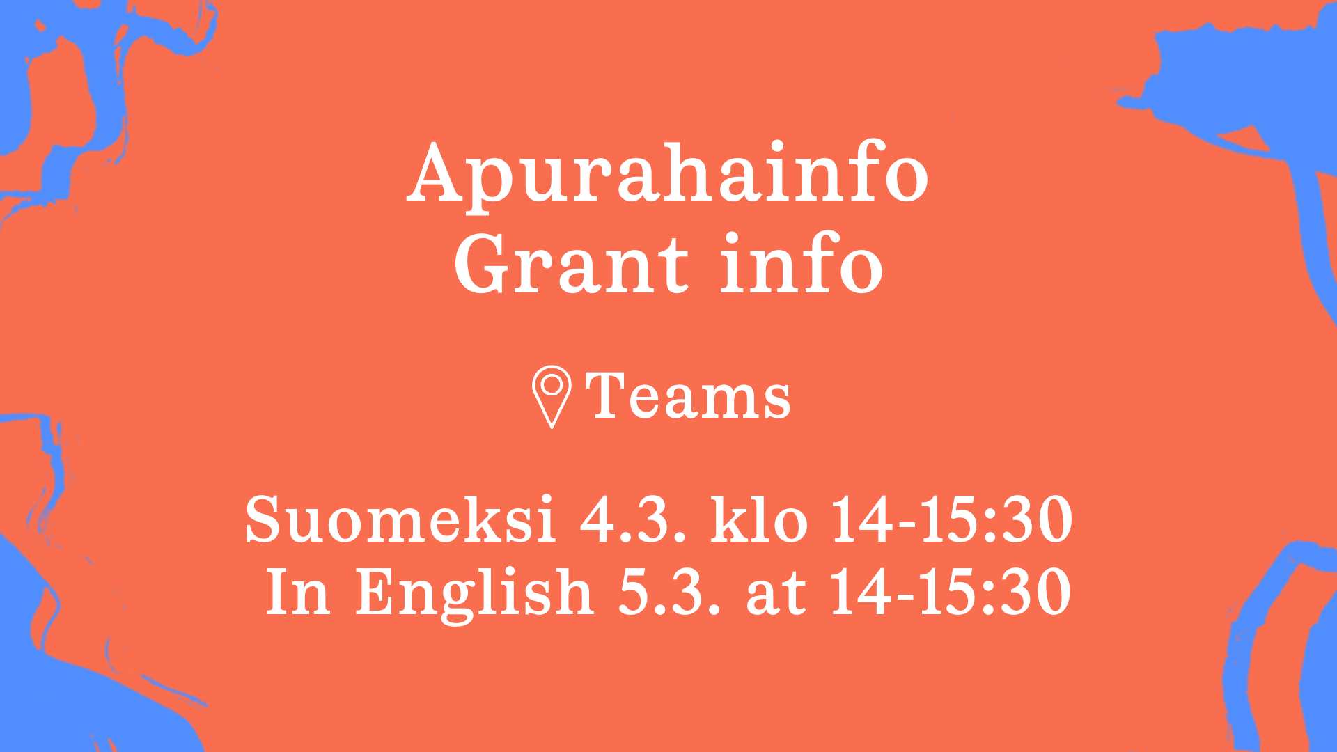 Suomenkielinen apurahainfo keskiviikkona 4.3. klo 14:00-15:30. Liity mukaan infoon tästä!